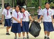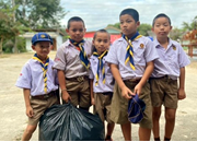 バーン・メーランカムスクールは現在、女子56名、男子64名の全校生徒数が120名となりました。ここ数年で生徒数が減少しています。この学校では、一週間に一度実施されているボーィスカウト、ガールスカウトの時間などに学校のこ‘み拾いを行っています。集めたゴミはしっかりと分別して、資源ごみは先生たちが下の村の買取店に持参します。ゴミが売れたお金は子どもたちの学用品やおやつ代などに活用されているそうです。